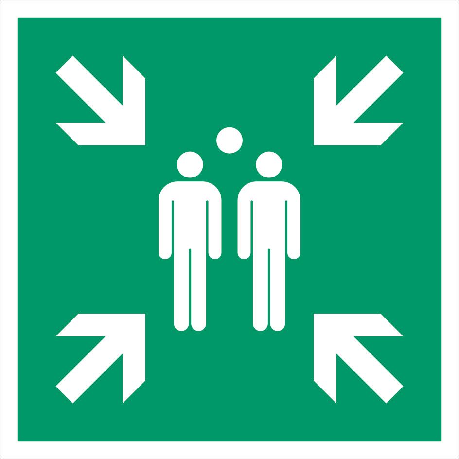 Efterlysande återsamlingsskylt enligt ISO standard 7010.