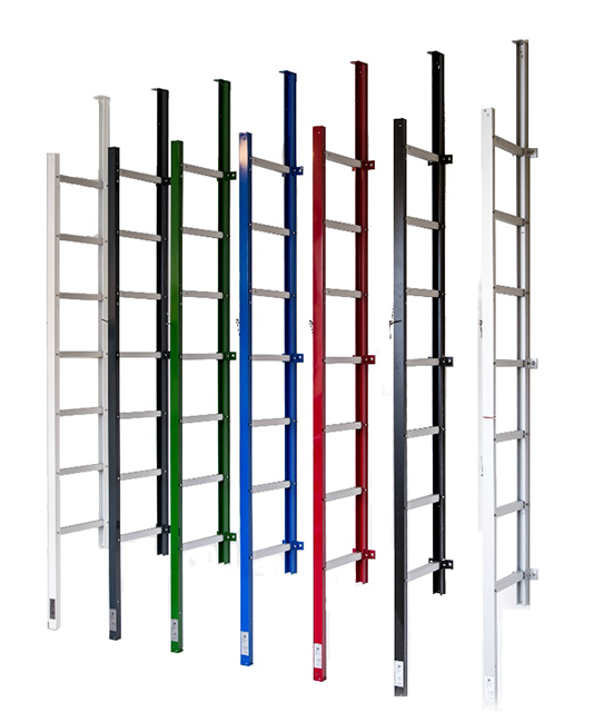 Monterad på vägg är stegen 47 mm bred och 72 mm djup ( väggfästets mått 120 x 40 mm). Modum inspektionsstege finns i 9 standardlängder, med ett stegavstånd på 300 mm och varje steg är 311 mm