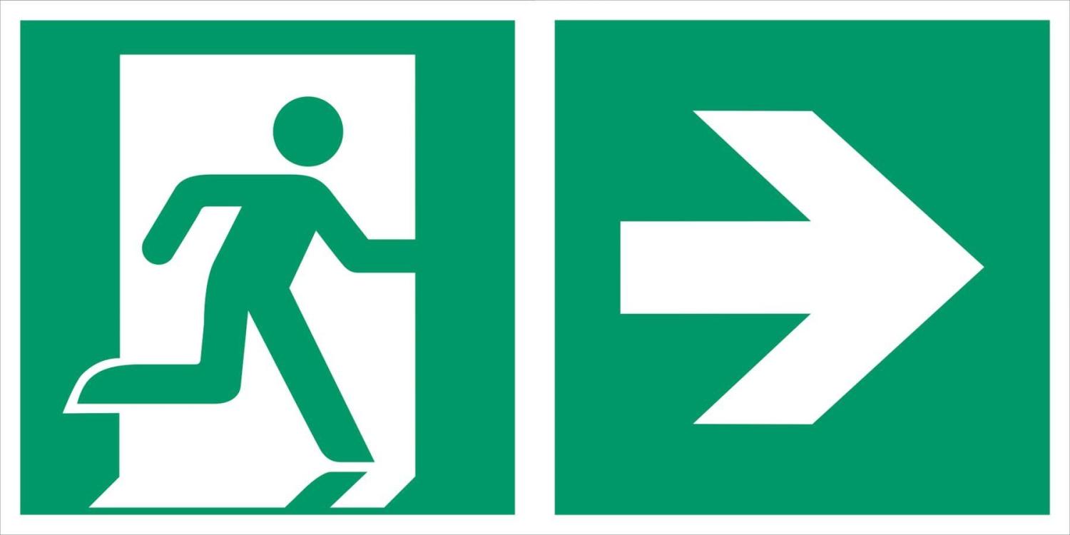 Denna utrymningsskylt har piktogram enligt ISO-standard 7010.