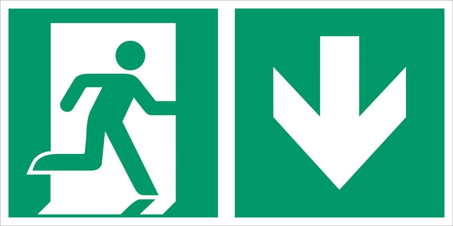 Denna utrymningsskylt har piktogram enligt ISO-standard 7010.