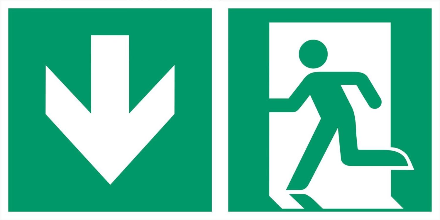 ISO Utrymningsskylt pil ned
